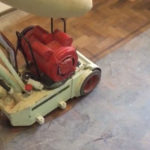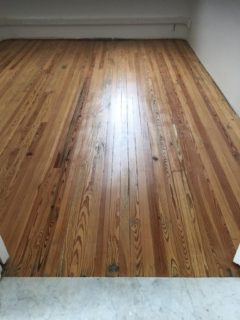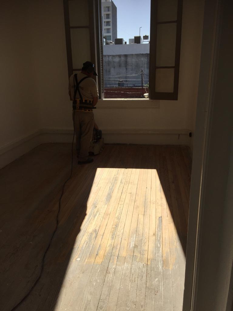 Trabajo sobre pisos de pino thea antiguos. Hospital Español